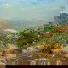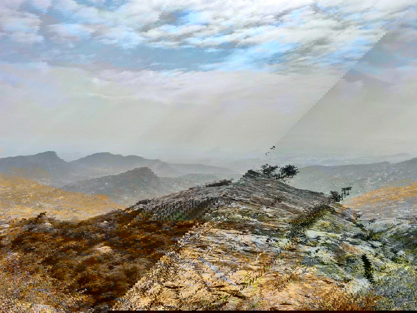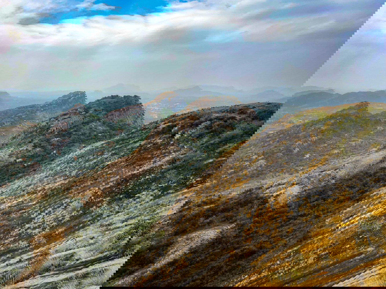 The trek starts from a temple at the base, and the first 100 mts is through a mud path. As we go ahead, the next 1 km goes through steep rocks, which serve as steps through some lovely green bushes and canopies above. As we go higher, we get our first view of the whole town.