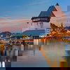 Travel by train to Venice Mestre, with scenic interchanges along the way. Discover the romantic charm of Venice, celebrated for its picturesque canals, iconic gondolas, and landmarks like St. Mark's Square and the Doge's Palace.