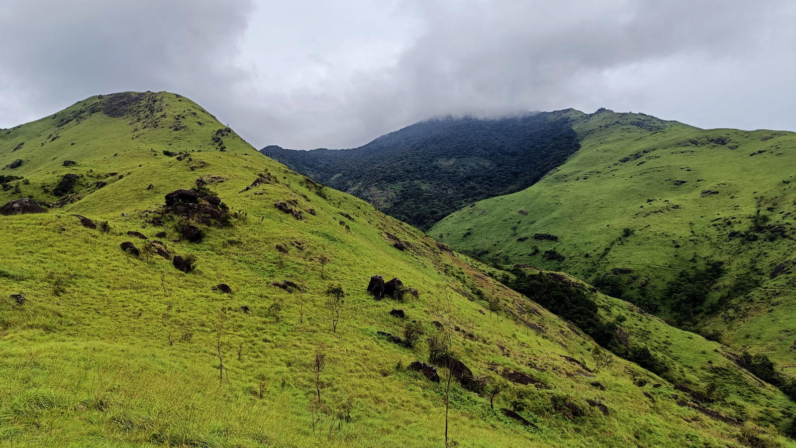 Banasura Hills is one of the highest mountain range in the Western Ghats. Trekkers here can see everything from wild medicinal flowers to waterfalls and cloud-capped hills. People can immerse themselves between the mist by trekking through the highlands to Banasura peak. The trail is spectacular in its own terms because of the lack of crowds here which makes it more rewarding and enjoyable experience. The trek distance is 7.5 km one way which starts inside the dense forest and continues through steep rocky terrain and plain grasslands with few ridge walks. The final stretch of the peak appears after crossing several hills and the famous Banasura Dam can be seen in the distant. After reaching the peak, one can have panoramic views of a breathtaking landscape which consist of green hills, blue reservoir, and cloudy sky. The elevation of Banasura Peak is 6,800 feet above sea level and this region has fauna like Wild Boars, Elephants and Deer.